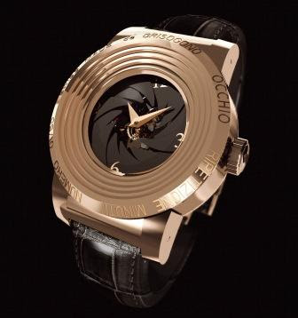 Instrumento Occhio Ripetizione Minuti ist eine am Handgelenk getragene Uhr mit Minutenrepetition mit Glockenspielen der Kathedrale. Seine Exklusivität wird durch eine wichtige technische Neuerung unterstrichen, die durch eine zweiteilige Öffnung der Reflexkamera erreicht wird: Das Instrumento Occhio verfügt über eine Zwölfblatt-Membran, die sich öffnet, um die Bewegung zu zeigen, während die Glockenspiele erklingen.